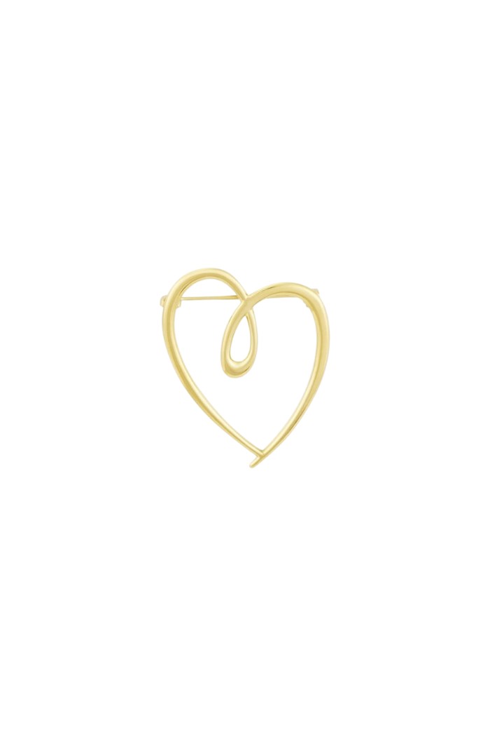Deze minimalistische broche in de vorm van een hart straalt eenvoud en verfijning uit, met een vleugje eigenwijsheid. Het goudkleurige ontwerp is strak en subtiel, maar heeft een speelse twist die het net dat beetje extra karakter geeft. Perfect om een stijlvolle, maar toch eigenzinnige touch toe te voegen aan elke outfit – ideaal voor wie houdt van tijdloze elegantie met een verrassend randje.