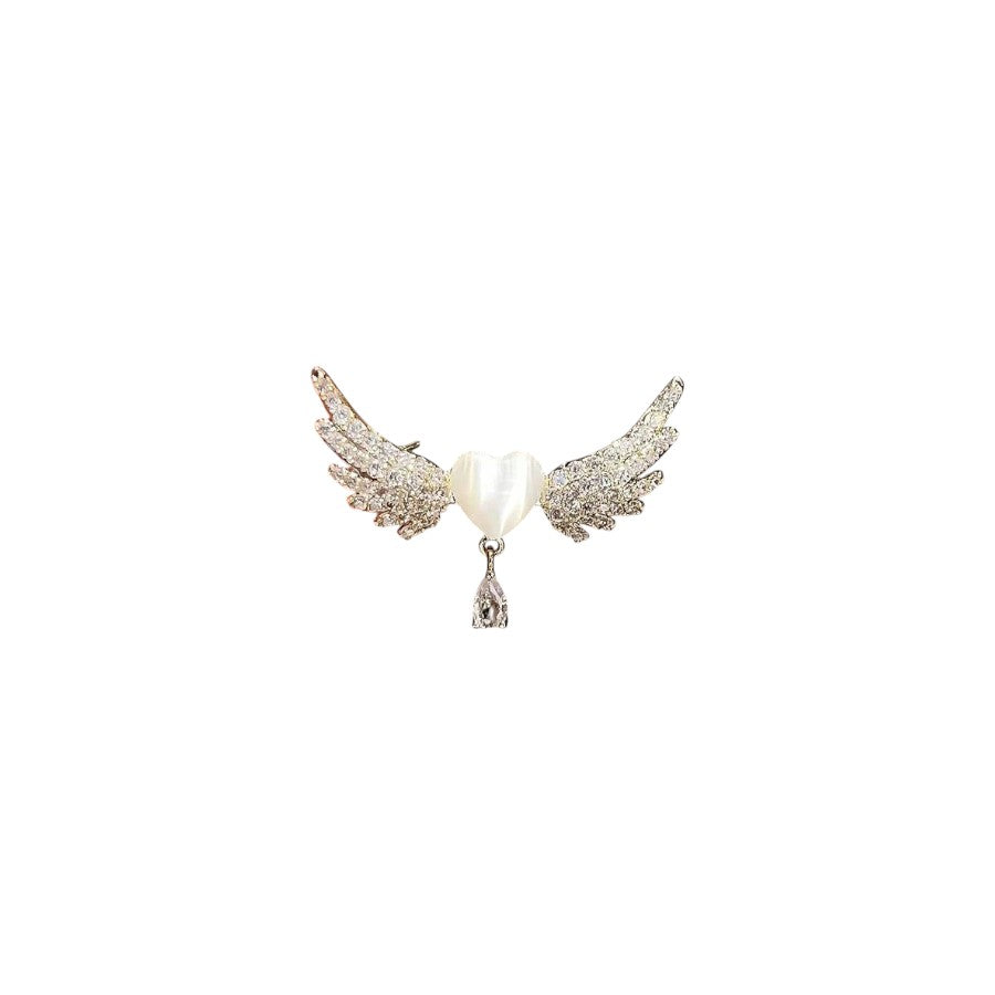 Een elegante en schattige broche in de vorm van een engelenvleugel met een hart en een waterdruppelvormig detail. Dit glanzende, minimalistische sieraad is ontworpen als een subtiele maar stijlvollebroche, perfect voor vrouwen die houden van verfijnde accessoires. De zilverkleurige afwerking geeft een tijdloze en moderne uitstraling, terwijl het hart en de vloeiende lijnen van de vleugel symbool staan voor liefde, bescherming en vrijheid. Een prachtig accessoire voor op een blazer, sjaal of jurk en een ideaal cadeau voor een speciale gelegenheid.