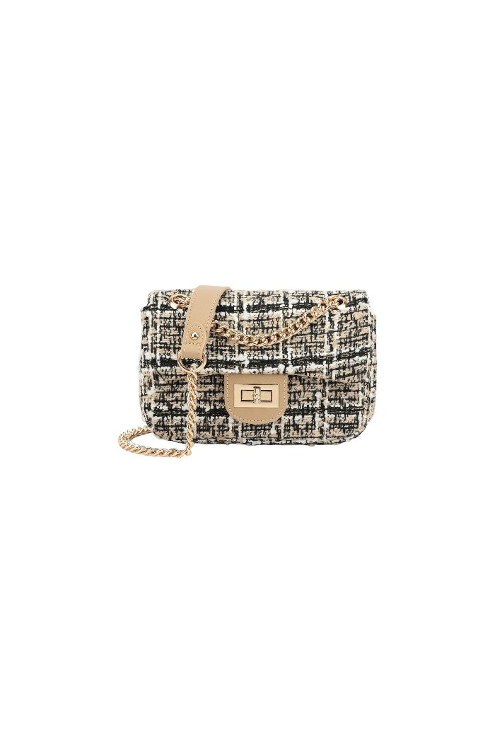 Mooi handtasje kustleder,gevoerd met draaisluiting en goudkleurige metaal afwerking.