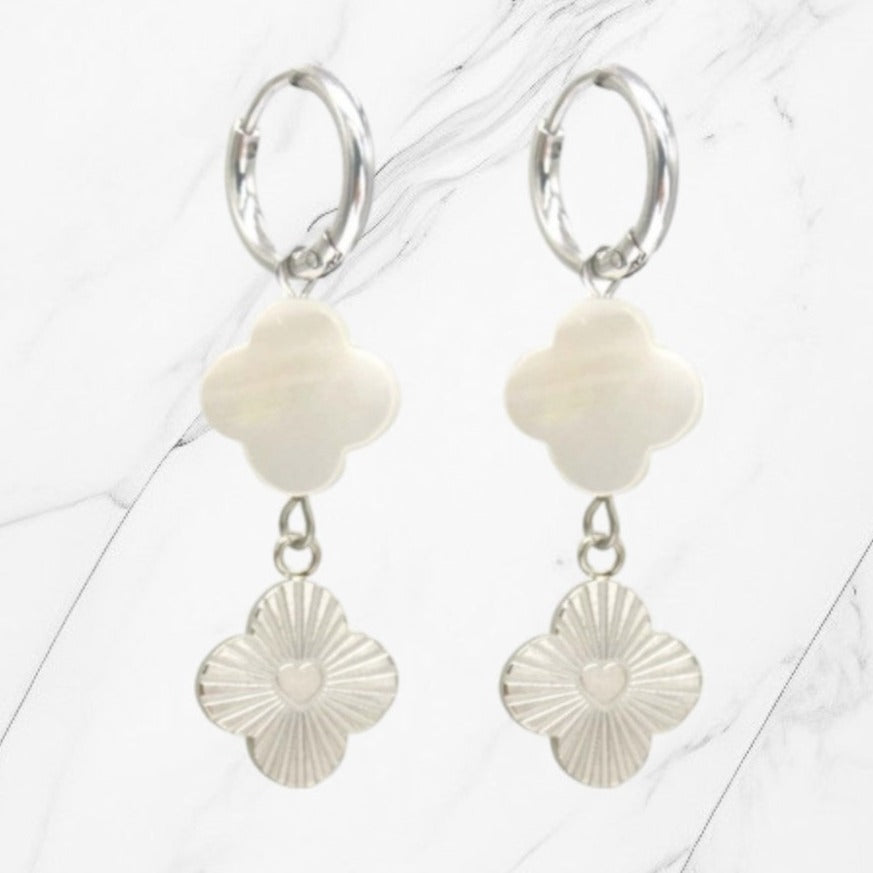 Hang oorbel met bloemen parel - Zilver/Wit