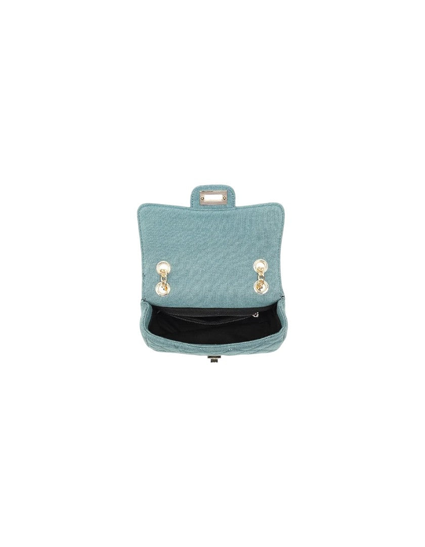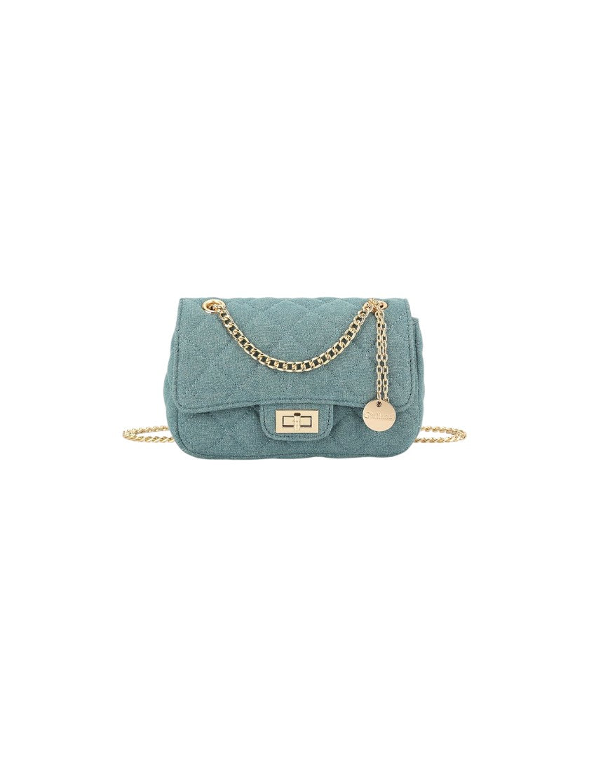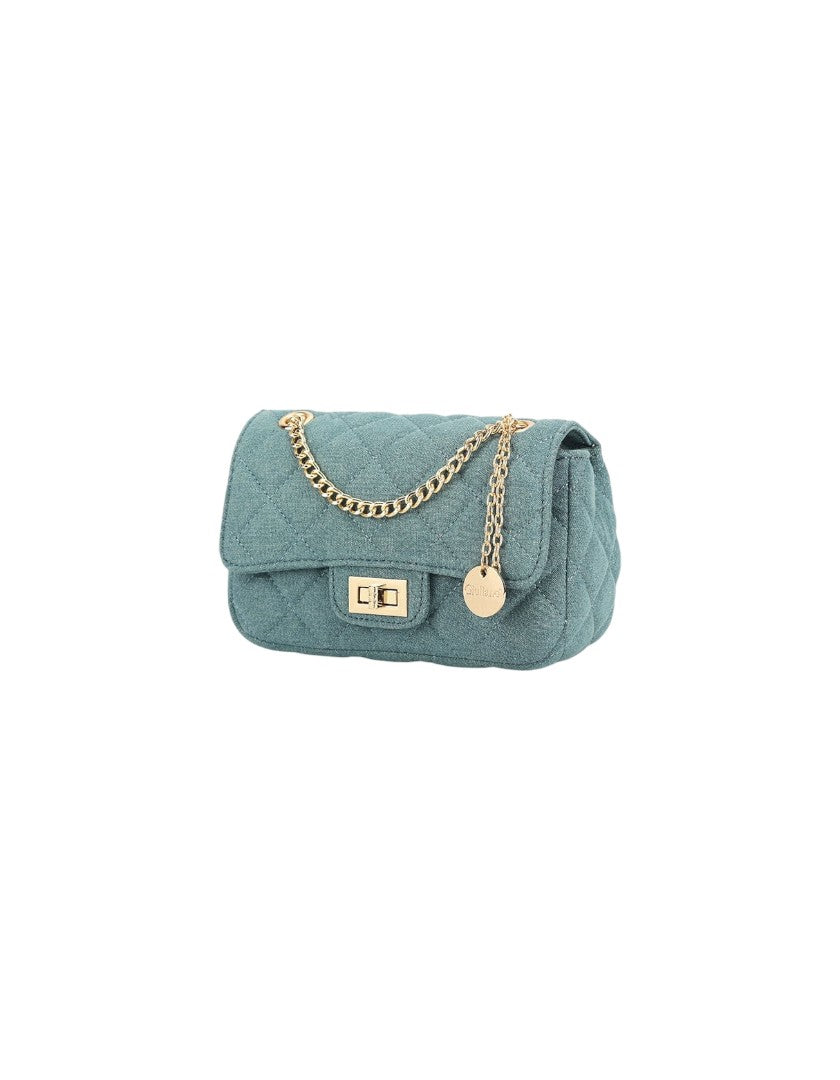 Jeans schoudertas met een gouden ketting.