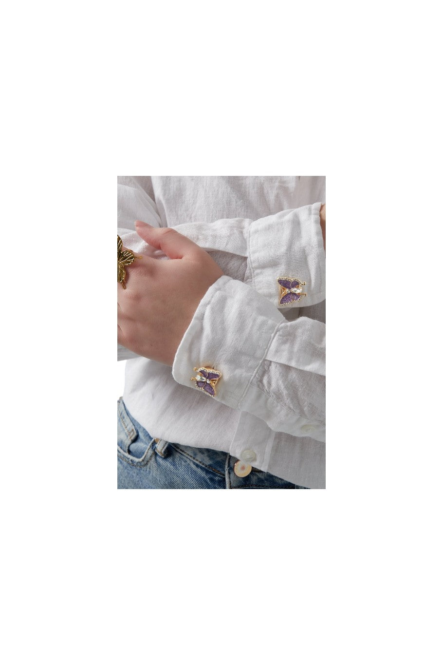 De Loving Flutters manchetknopen brengen een vrolijke en luchtige sfeer naar je voorjaars- en zomeroutfits. Gemaakt van hoogwaardig koper en verkrijgbaar in de levendige kleuren white, purple en black, voegen ze een speels accent toe aan elke blouse of lichte blazer. Het charmante ontwerp straalt lichtheid en plezier uit – perfect voor zonnige dagen, brunchdates of feestelijke gelegenheden. Een frisse, vrouwelijke finishing touch die je look laat fladderen van stijl!