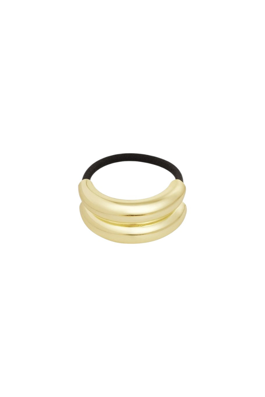 De Refined Touch haarelastiek straalt pure elegantie uit met zijn minimalistische en luxe goudkleurige design. Dit stijlvolle accessoire biedt een stevige en comfortabele grip, terwijl het tegelijkertijd een verfijnde touch aan je kapsel geeft. Met een formaat van 5 cm is het perfect voor zowel een chique als casual look, ideaal voor dagelijks gebruik of speciale gelegenheden.